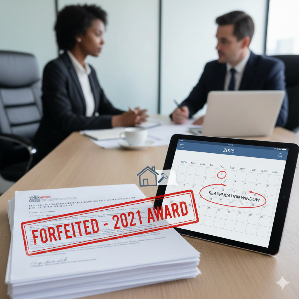 During the Dec. 9 work session, Chief Housing & Community Development Officer Amanda Gregg, accompanied by Community Development Manager Margi Joe, explained that the Maryland Department of Housing and Community Development advised the city to return the grant and submit a new application rather than seek another extension.