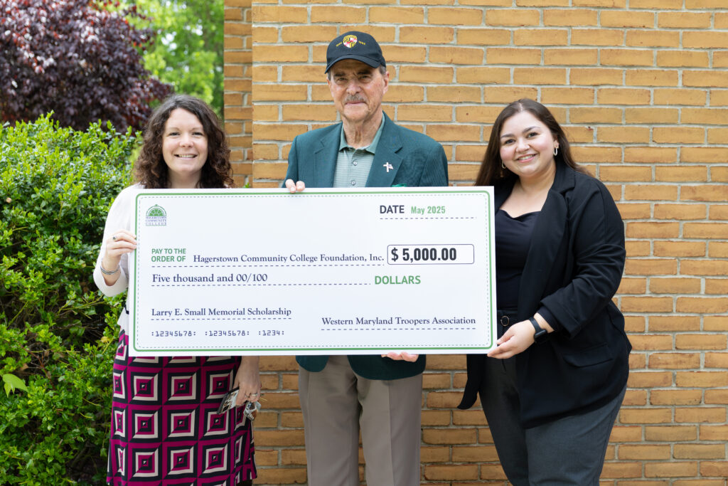 HAGERSTOWN – The Hagerstown Community College Foundation received a $5,000 donation for the Larry E. Small Memorial Scholarship from David Yohman, retired HCC faculty member and former Maryland State Police officer, on behalf of the Western Maryland Troopers Association.