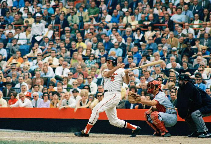 In the 1966 World Series, the Orioles made their dominance official, sweeping the heavily favored Los Angeles Dodgers, four games to none. A famous photo at the Series’ conclusion showed a jubilant Brooks Robinson leaping for joy- an expression of pure ecstasy for a dream achieved. The Orioles would also make World Series appearances in 1969-1971. Brooks Robinson would pair with first-rate playing partners Frank Robinson and Jim Palmer to achieve another championship in 1970.