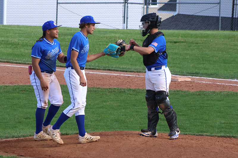 WAYNESBORO – Waynesboro Indians junior pitcher John Kahl received a loud reception from teammates after pitching a no-hitter against Shippensburg on Tuesday, May 6 at Robinson Field.