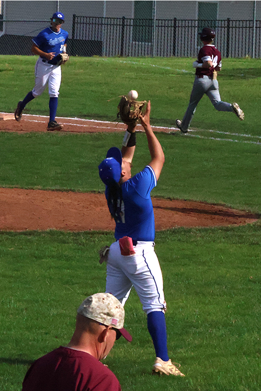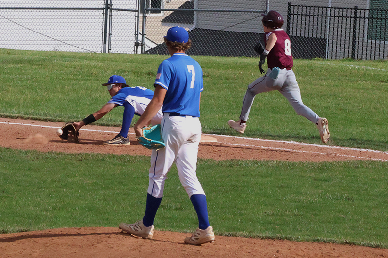 Kahl, an imposing right-hander, came close to a one-hitter, but a ground ball hit by Ayden Mentzer in the top of the fourth inning was ruled an error instead of an infield single. Kahl walked three batters, struck out three with 10 outs coming on fly balls during a 4-0 Mid-Penn Colonial Division victory.