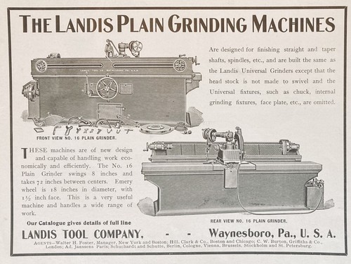 Abraham (A.B.) Landis (1851-1923), along with his brothers Franklin and Ezra, created the Landis Machine Company and patented some of the machine industries most significant innovations. One being the first universal cylindrical grinding machine in 1883. In all, Landis would receive fifteen patents between the years 1885 and 1893. The machine parts and tools that Landis invented were useful is several industries and crossed over to multiple markets.