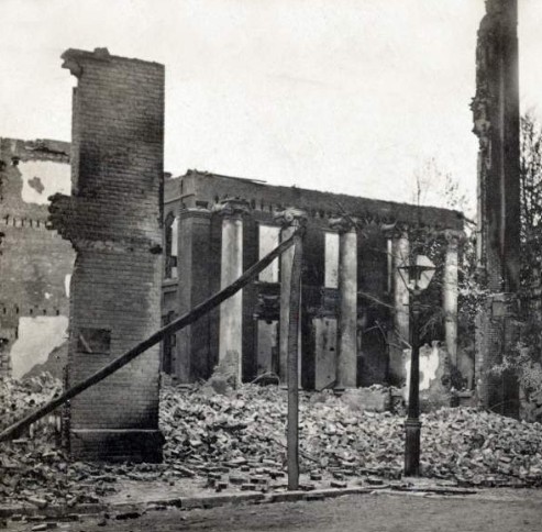 A great fire destroyed nearly all the downtown buildings including most of Main Street. The old jail was one of the few buildings that were spared during the burning. Most of Main Street was left in ruins.