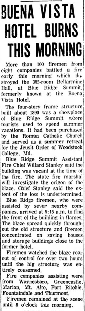 The Buena Vista Springs Hotel was one of Franklin County’s most memorable attractions. Built in 1890, the five-story, 250-room hotel was Victorian style and was once known as the “Alps of America.” Situated on the mountain near Pen-Mar Park in Washington Township, just outside of Waynesboro, Buena Vista Springs Hotel was popular among celebrities, politicians and even foreign dignitaries.