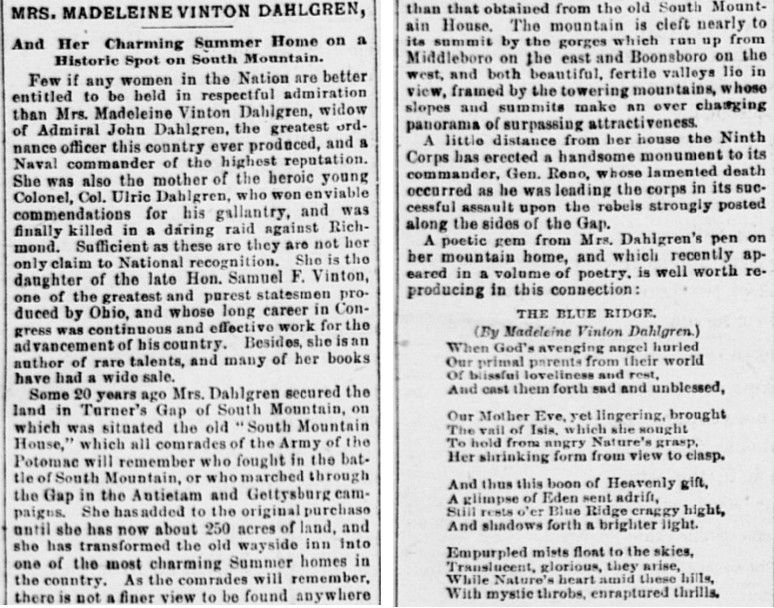BOONSBORO- “Thoughts of Female Suffrage: and in true vindication of woman’s true rights”, “Democracy, an American novel”, “South Mountain Magic”, and “The Woodley Land Ghost, and other stories” are just a few of the book titles that came from the brilliant mind of writer and anti-suffragist, Madeleine Dahlgren.