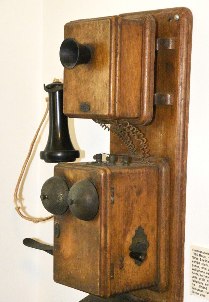 The Exhibit Room showcases a variety of Greencastle’s iconic sites and past societies, including Martin’s Mill Bridge memorabilia, items from classic local businesses, Old Home Week collectibles and handwritten journals. The collection also includes two of Greencastle’s first telephones installed at Carl’s Drug Store and inside their home. As a visitor’s eye wanders from one interesting item to the next, the effect is a spontaneous trip in a time machine, journeying backward into Antrim’s illustrious past.