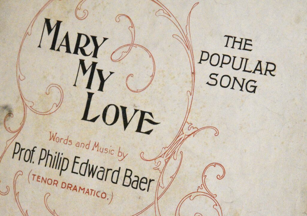 Downstairs, Philip Baer, the founder of Old Home Week and a famous Italian-trained opera singer, is remembered in the parlor. Original copies of his sheet music for “Mary My Love” rest atop his 1870 Steinway and Son grand piano, which accompanied the musician on his ambitious minstrel travels throughout the country. Baer’s concert tuxedo coat, donated by his niece, completes the honorary tribute to one of Greencastle’s most beloved past citizens.