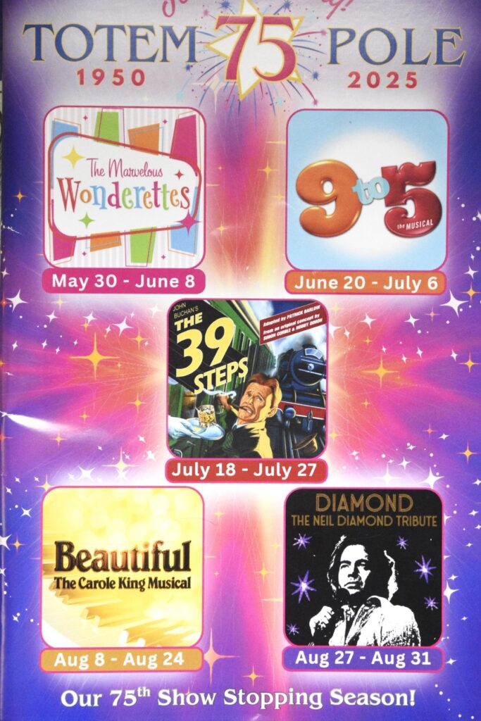 Gibbs is excited about Totem Pole’s future. He says the love and support shown for the playhouse during the past eight decades fortifies the venue, and “that belief in live theater will carry us through the next 75 years. We thank everyone for being part of our journey.”