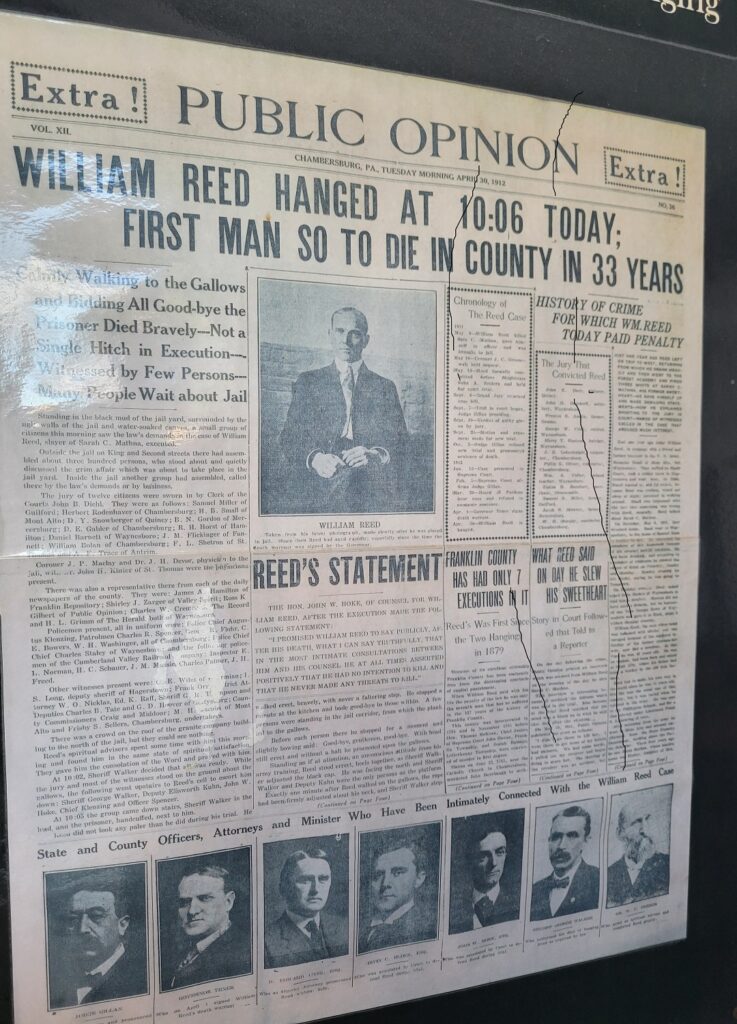 The Old Jail would only see a handful of inmates meet their fate on the gallows. The first execution would take place in 1879, and the last execution would take place in 1912 when Waynesboro native and murderer, William Reed’s sentence was carried out. Reed was sentenced for shooting his ex-girlfriend, Sarah Mathna three times with a .38 caliber revolver after a heated argument in May 1911.