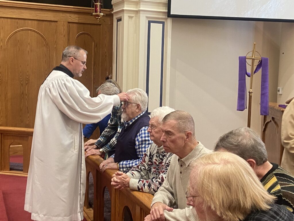Members of Evangelical Lutheran Church in Waynesboro receive the sign of the cross with ashes on their forehead from the Rev. Dennis Beaver at the Ash Wednesday service today. Ash Wednesday marks the start of the 40-day holy season of Lent, a time for reflection and repentance in preparation for the celebration of Easter.