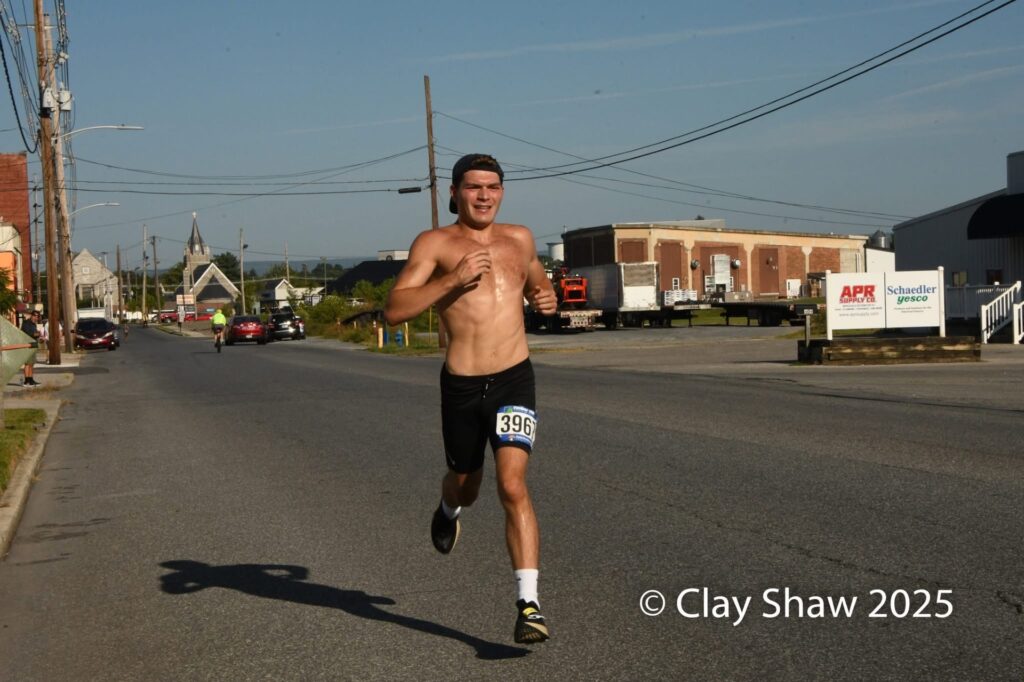 Fayetteville’s Carson Mello competes at the Ausherman 5 Miler in Chambersburg. Mello finished third overall in 28:10.