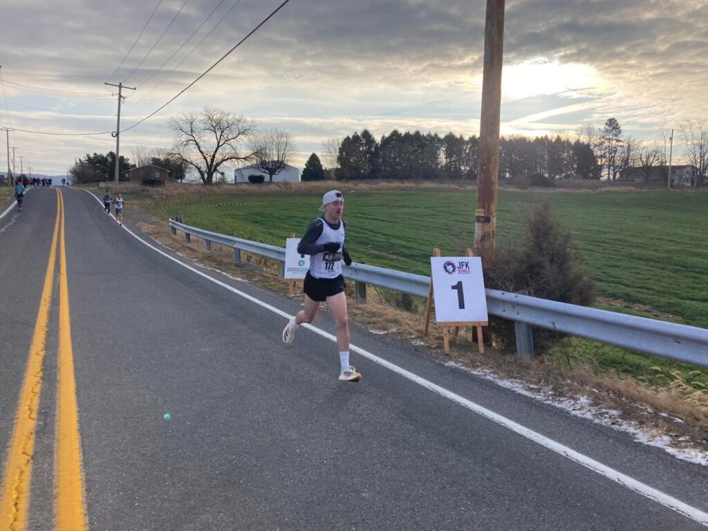 Photo courtesy of Mitch Hawbaker Jonah Smith, of Smithsburg, Md., competes at the Christmas Cash Dash 5K in Chambersburg. Smith took sixth overall in 16:48.