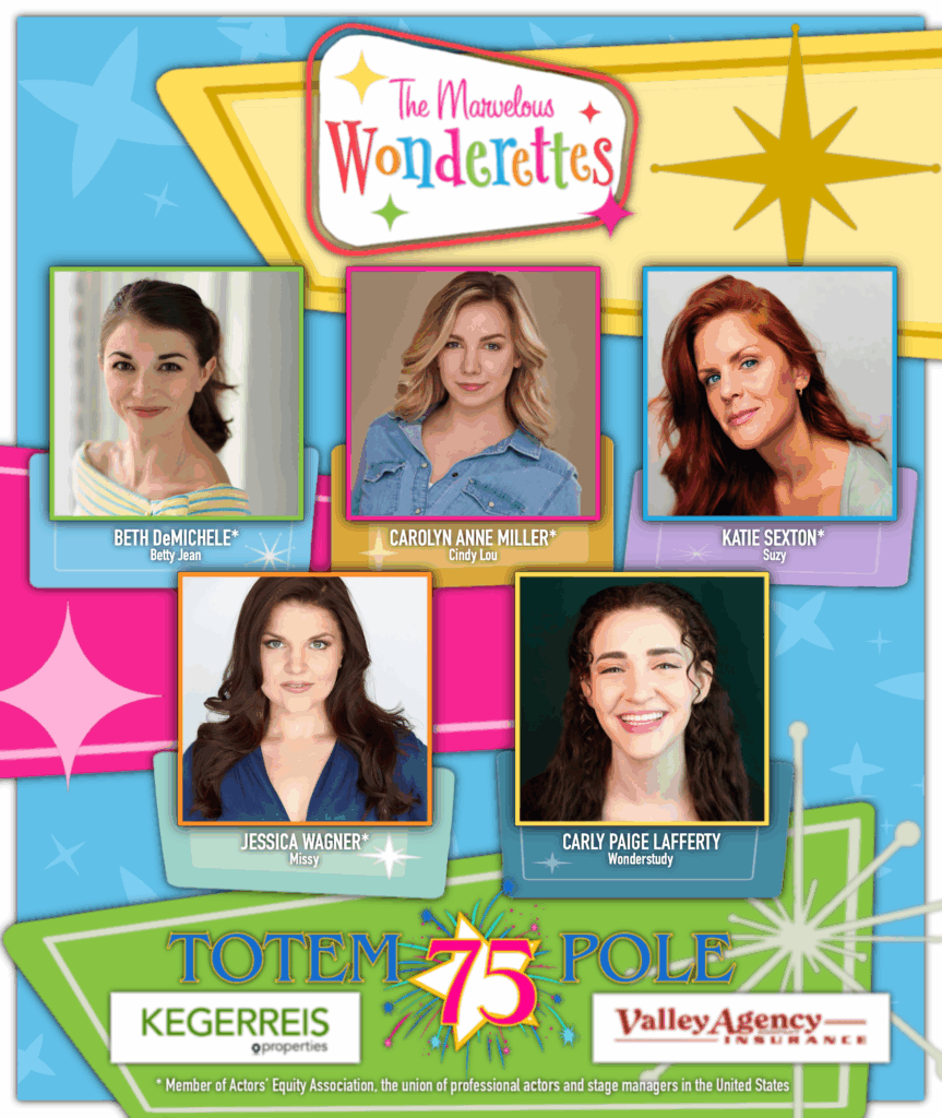 The cast features Katie Sexton as Suzy (Broadway: The Play That Goes Wrong), Jessica Wagner as Missy (National Tour: The Phantom of the Opera), Carolyn Anne Miller as Cindy Lou (Frozen: Disney Cruise Lines), and Beth DeMichele as Betty Jean (National Tour: Pete the Cat) and local sensation Carly Paige Lafferty as the “Wonderstudy.” The production is directed by Ryan B. Gibbs, Totem Pole’s producing artistic director, whose credits include “Wicked,” “Rent,” and productions for Disney Theatricals and Broadway Cares/Equity Fights AIDS.