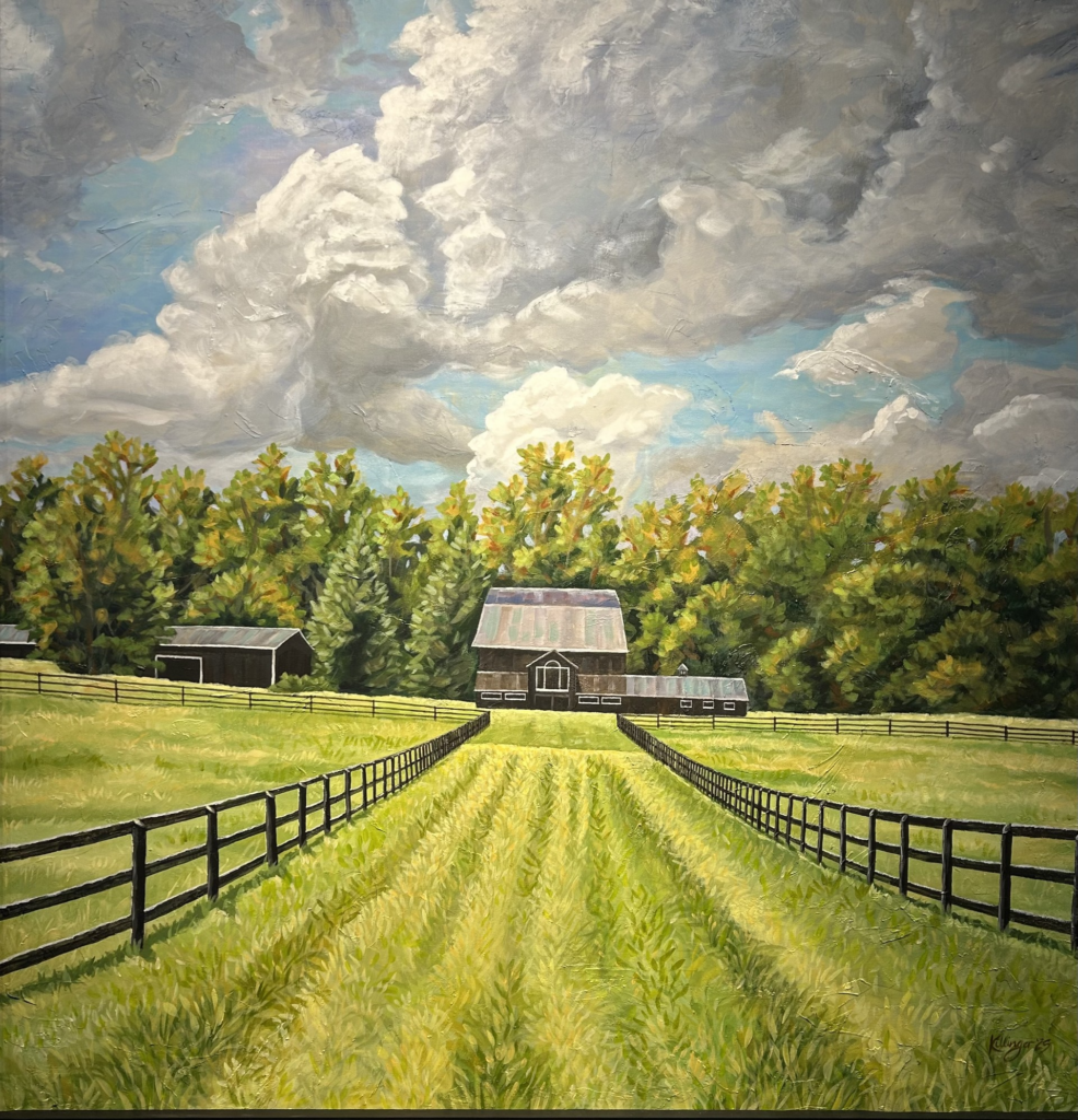 Killinger’s artwork depicts the beauty of farm life, a profession he “began only five years ago when my wife and I purchased a farm and slowly filled it with beautiful creatures,” he said. “Over time, the animals and the land became our sanctuary, a place where we could lose ourselves in peace, joy and serenity.”
