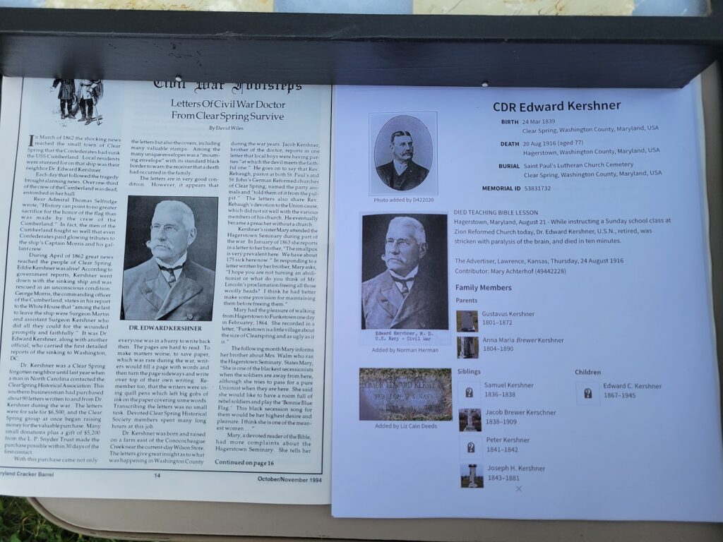 He proudly displayed to me a photo of A.D. Morganthall as well as a collection of envelopes that once contained letters from a surgeon during the Civil War, Dr. Edward Kershner, who was originally from Clearspring, Maryland and had a practice in Hagerstown. Maryland. The envelopes were given as a gift to Blubaugh and have since become a centerpiece of his growing collection. Blubaugh spoke humbly of his of artifacts on display, but it was still an impressive collection of living history.