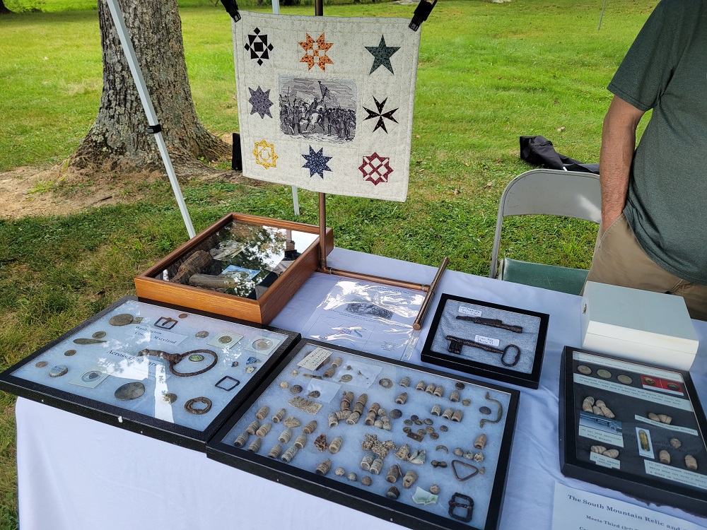 WAYNESBORO– On Saturday, Aug. 16 the Monterey Park Battlefield Park and Museum held their annual Relic Display Day event on the lawn of the museum. Even the scattered thunderstorms that came through the area throughout the day didn’t stop visitors and history buffs from coming out to see a variety of artifacts ranging from coat buttons, coins, musket balls, rifle bayonets, and even a variety of postcards and letters on display all with a unique story to tell.