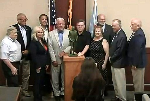 Sculptor Toby Mendez, along with members of a special committee chaired by Al Martin presented a two-foot maquette of the sculpture to the county commissioners at its July 15 meeting to help publicize the work.