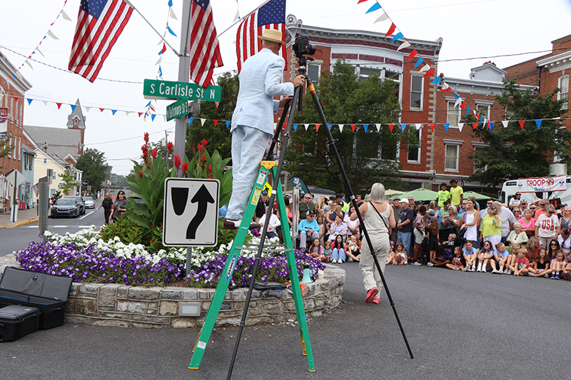 GREENCASTLE – The Central Photo Company of Washington, D.C., upheld a cherished tradition at Greencastle’s Old Home Week, capturing a panoramic portrait on the square. James Ivey, a third-generation photographer, and his daughter, Madeleine Ivey, fourth generation, led the effort, continuing a legacy that began in 1902 with the first Old Boys’ Reunion.