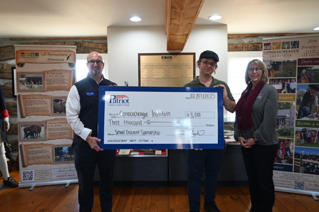 MERCERSBURG – Patriot Federal Credit Union is the first sponsor of the Conococheague Institute’s school programs, contributing $3,000 to support educational field trip and hands-on experiences.