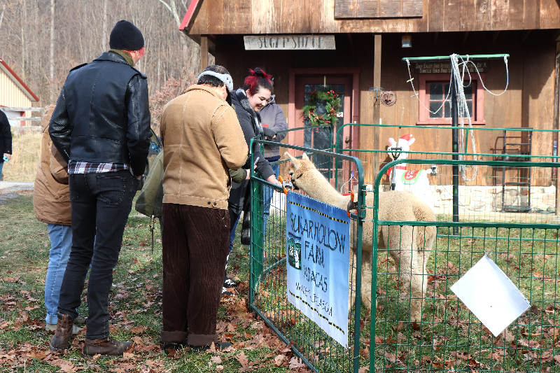 WAYNESBORO – On Saturday, Dec. 7, Sugar Hollow Farm Alpacas hosted its Seventh Annual Holiday Open Farm event from 10:30 a.m. to 4 p.m., despite the chilly weather. Visitors enjoyed the opportunity to see the alpacas in their natural habitat while warming up by a fire pit with hot chocolate and cookies. Many attendees took advantage of the farm’s shop, searching for unique alpaca-themed gifts for the holiday season. The event attracted families and alpaca enthusiasts alike, fostering a festive atmosphere at the veteran-owned farm in Waynesboro.