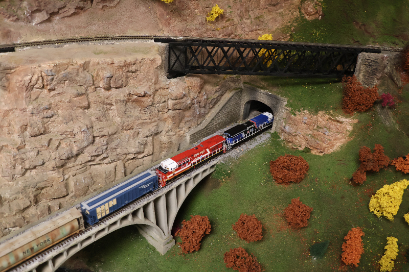 - 3-Rail O-Scale: Central layout capable of running four trains simultaneously