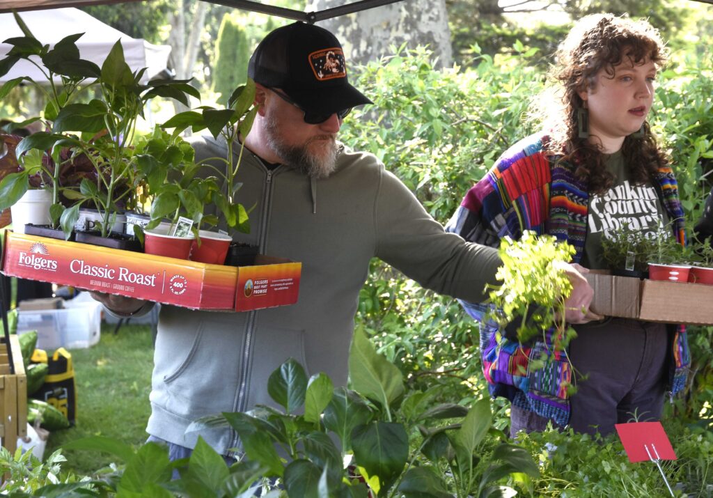 Paul Pinkerton, a library board member, said the sale served as a fundraiser for the library and provided “perfect gifts for Mother’s Day.” Shoppers browsed the selection in search of unique plants and thoughtful presents for the holiday.
