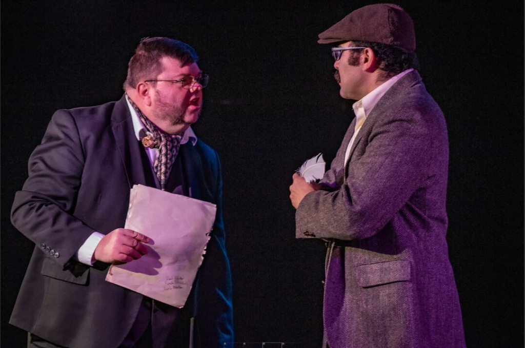 Because the script is fairly new and is being produced by a community theater team, there are some expected inconsistencies. Accents fade in and out, costumes vary in quality and style, and the occasional prop may topple from the stage into the first row. The intrepid cast takes all this in stride and is not afraid to laugh about it while inviting the audience to share the joke.