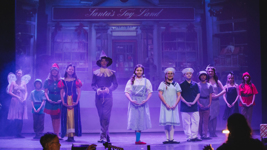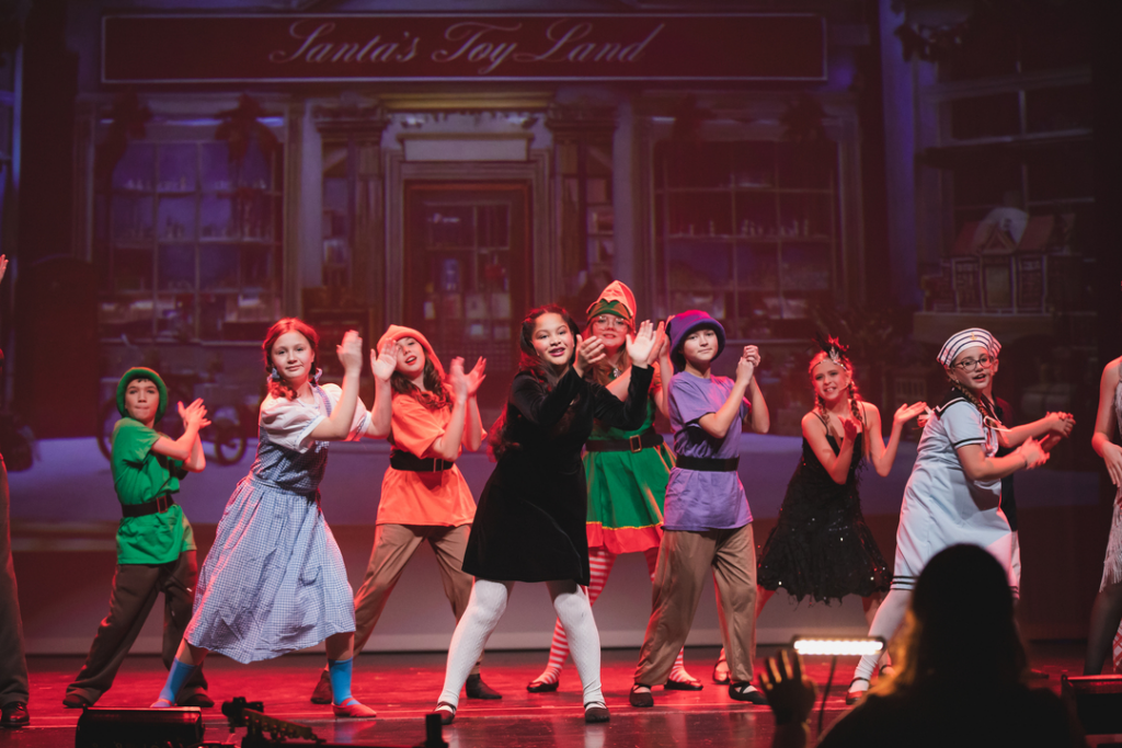Choreographer and CCT Board Member Courtney Burkholder kept the tale on its toes, creating the stepping style for everyone from the Rockettes, a majorette, storybook characters and the citizens and tourists of NYC. She additionally appeared as Clara. More family ties are assumed with Michael Burkholder, credited as Harry Finfer, and Mya Burkholder as Majorette, punctuating the parade with her twirling. All three Burkholders played in the ensemble.