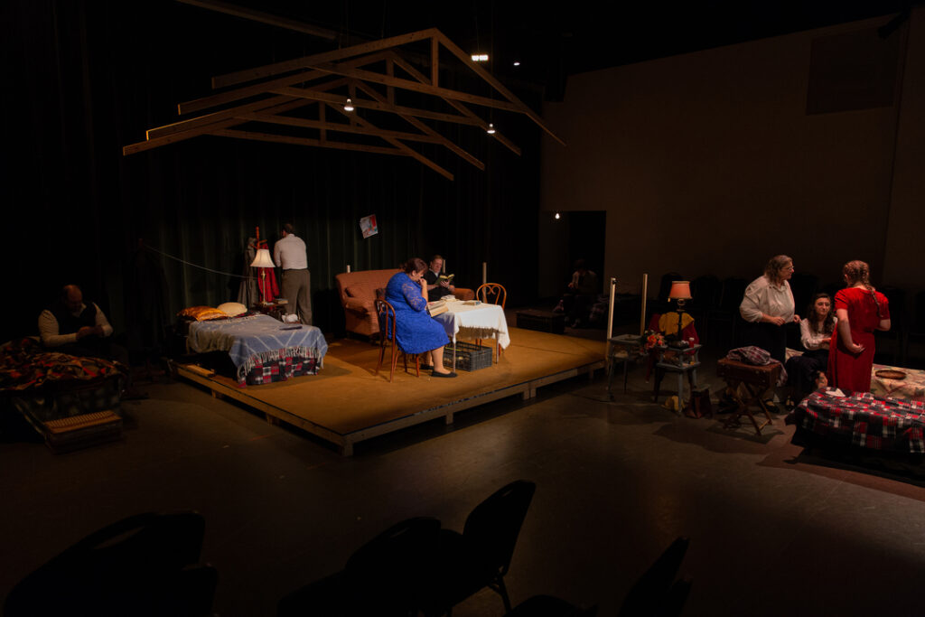 Through the Capitol Theatre Wood Center, the audience is transported to the top floors of a covert Amsterdam warehouse annex, circa 1942–1945, to bear intimate witness to both the greatest and most atrocious aspects of humanity. Set design is credited to MBC Set Designs, with the carpentry support of Bryan Griffin. A thrust stage builds out the Secret Annex, uniquely crafted to the exact dimensions (excepting Peter’s quarters), of the actual temporary dwelling place where the Frank family was secreted away.