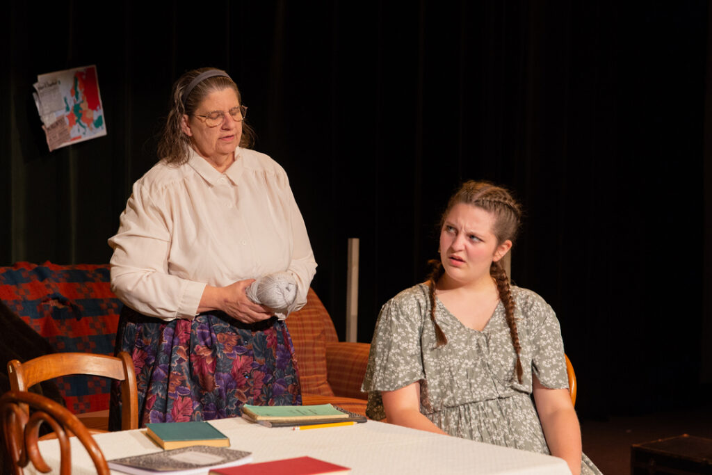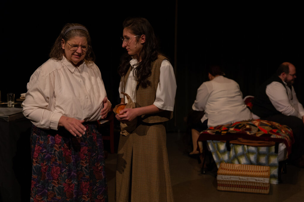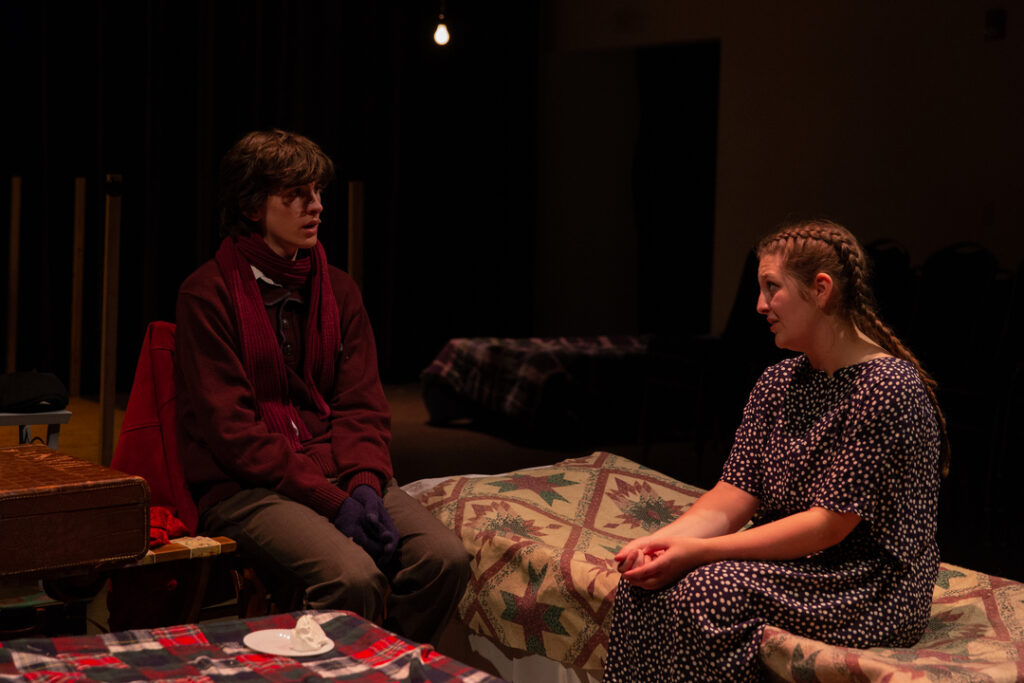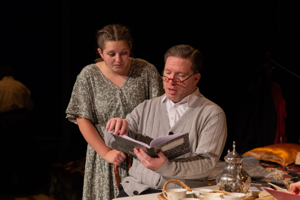 Anne’s sister, Margot, played by Lily Snowberger, provides relief to Edith, leaning in with assurances and 16-year-old wisdom, “It’s a phase – you heard Father – most girls go through it – they turn to their fathers at this age – they give all their love to their fathers.” Snowberger maintains a truthful presence, rife with nuanced mannerisms and felt even in the shadows. Margot is a voice of reason and respect, most like her father.