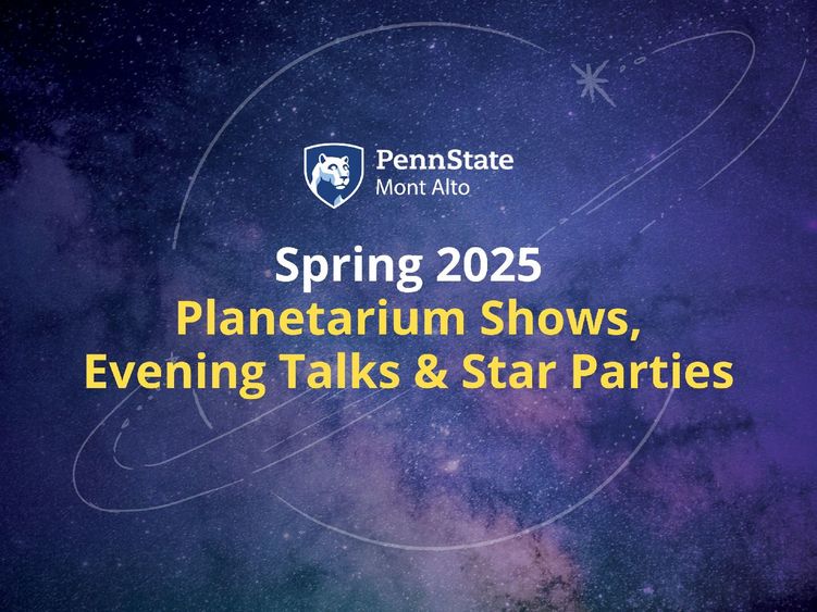 Penn State Mont Alto announced the spring 2025 popular Evening Series will again feature three categories of events: planetarium shows, evening talks and star parties. All are free to the public and will be offered both in-person, weather permitting, and virtually. Advanced registration is required.