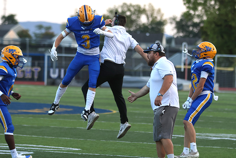 Kean Baumgardner bulled his way for a 6-yard run, and after a play that set the Indians back three yards, quarterback Rayshawn Fraser-Hewitt fired a strike to Christian Munday on a crossing pattern. Munday zipped on into the end zone, and Nick Cargaugh kicked the extra point to give Waynesboro, playing in its first home game of the season, a 7-0 lead.