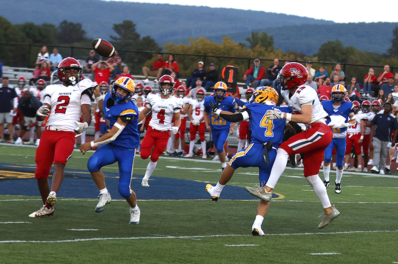 Shawn Smith sacked Shearer for an 8-yard loss on a first down at midfield. That came three plays after Red Land intercepted a Fraser-Hewitt pass that ricocheted off the receiver’s hands and into the arms of a Patriot defensive player.