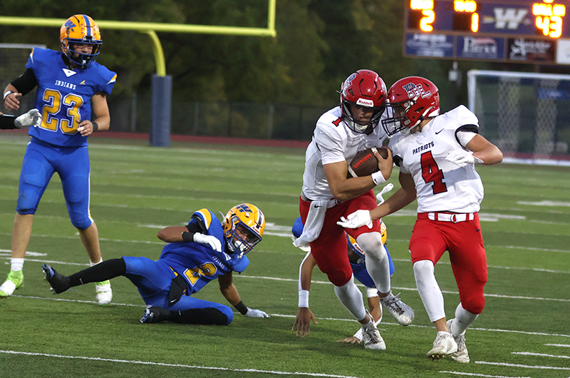It was the Waynesboro defense doing the most damage in the early part of the Mid-Penn Keystone Division tilt. The Indians quickly punted to the Patriots. However, three plays into a drive that yielded a total of minus-1 yard, quarterback Quinlin Shearer was sacked and fumbled the ball into the arms of Ryan Martin at the Red Land 12-yard line.