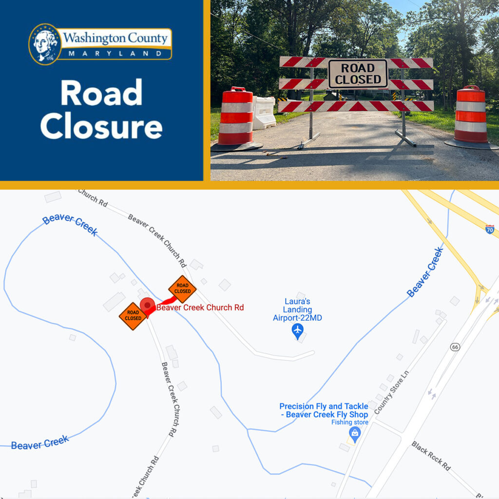 HAGERSTOWN, MD – The Washington County Highway Department has announced an upcoming road closure on Beaver Creek Church Road at the bridge. The road will be temporarily closed from Monday, Oct. 30, to Wednesday, Nov 22.