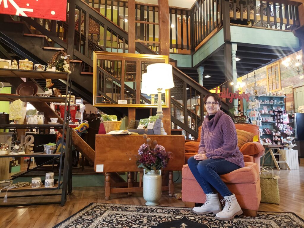 If the unique gifts aren’t enough to draw customers in, the shop’s architecture and structure should be. The multi-level barn features exposed beams and rafters.