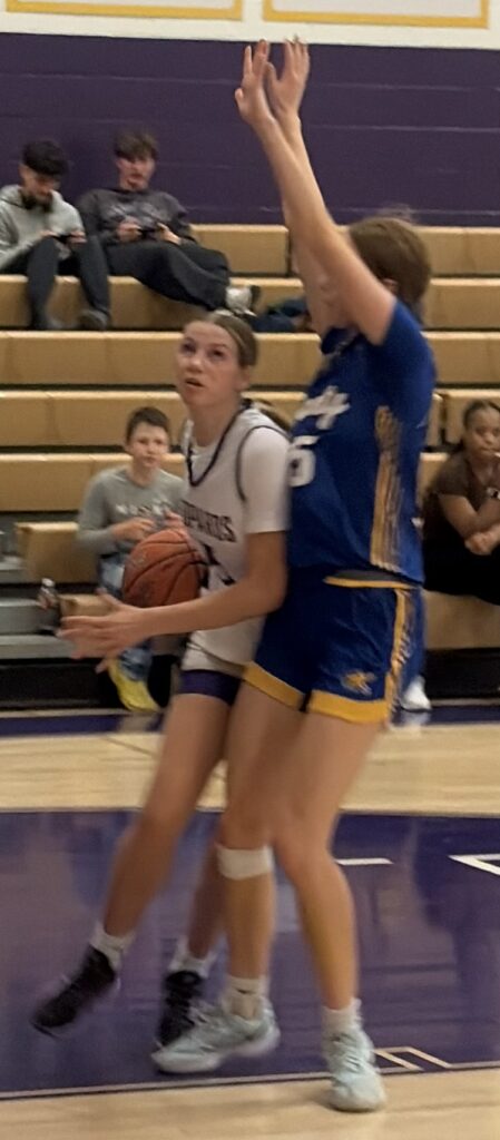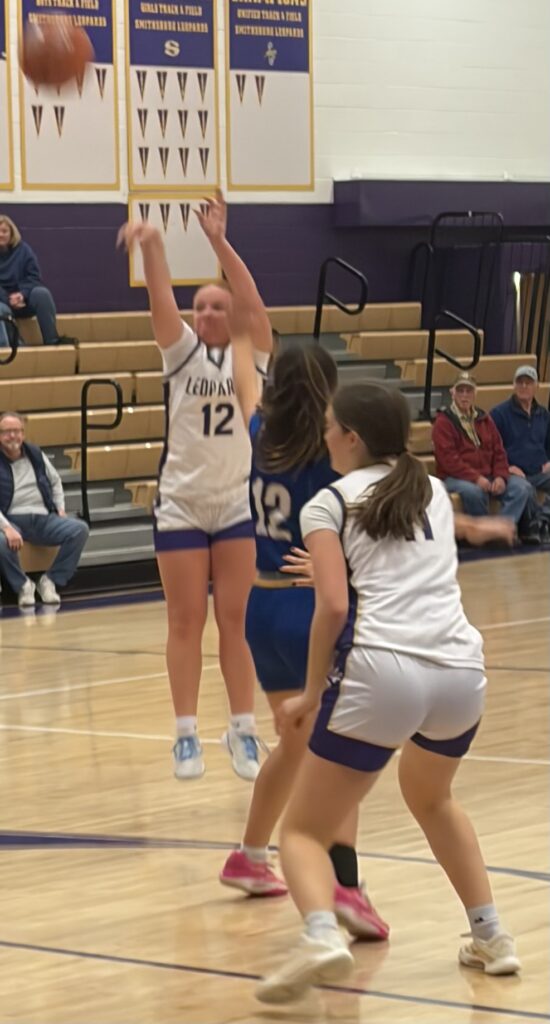 Claire Bono opened her scoring with a pair of three-pointers – her admitted much improved aspect of her game – on her way to 12 first-quarter points to build Smithsburg’s 21-2 lead after one quarter.
