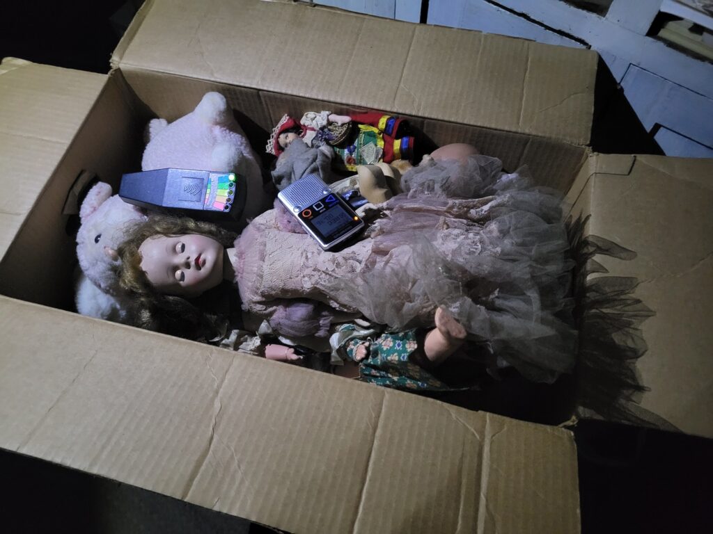 The store is filled with many different types of antiques that have come from all over the world. Clothing, toys, knick-knacks, tools and everything in between. Steve found a particular doll interesting as it seemed to react to the K-2 Meter he was using to gauge any electromagnetic influence while he asked it questions. It was fascinating to see the meter lights react as he probed for information.