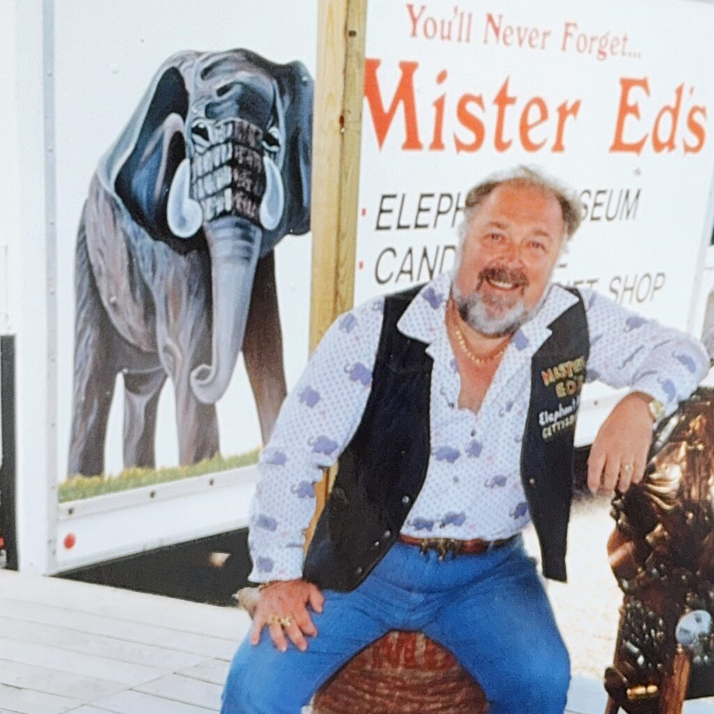The Gotwalts were back in business shortly afterward, now known as Mister Ed’s Elephant Museum. Anchoring the new store was “Miss Ellie,” a life-size talking/moving mechanized elephant that stood auspiciously outside the front entrance.