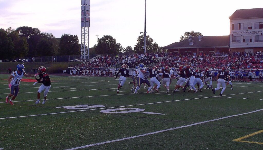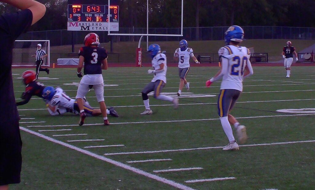 HAGERSTOWN – On Friday evening, Sept. 26, the 3-0 varsity football Hubs of North Hagerstown High School took to the field of Mike Callas Stadium to face the challenge of the 2-1 Virginia team, the Central Woodstock Falcons. When it ended, the Hubs had a third win at 18-7.