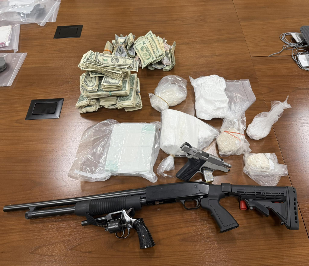 Authorities seized approximately four pounds of cocaine, two pounds and 10.5 ounces of fentanyl, a loaded Mossberg 12-gauge shotgun, a loaded Smith and Wesson 9 mm handgun with an obscured serial number, a loaded .32-caliber revolver, drug paraphernalia, ammunition and over $13,000 in cash.
