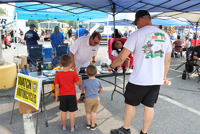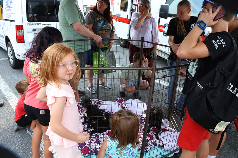 A scavenger hunt encouraged kids to visit vendors, including Valley College nursing students who hosted a ball-toss game. Other vendors distributed safety flyers, with South Central Pennsylvania Highway Safety focusing on car seat education and Saving God’s Children raising awareness about anti-human trafficking. The Blue Ridge Fire and Rescue Squad delighted children with its barrel train, while the Antietam Humane Society brought a litter of puppies for petting. Pentagon Protection Force Agency and WellSpan EMS also participated, rounding out the diverse lineup.