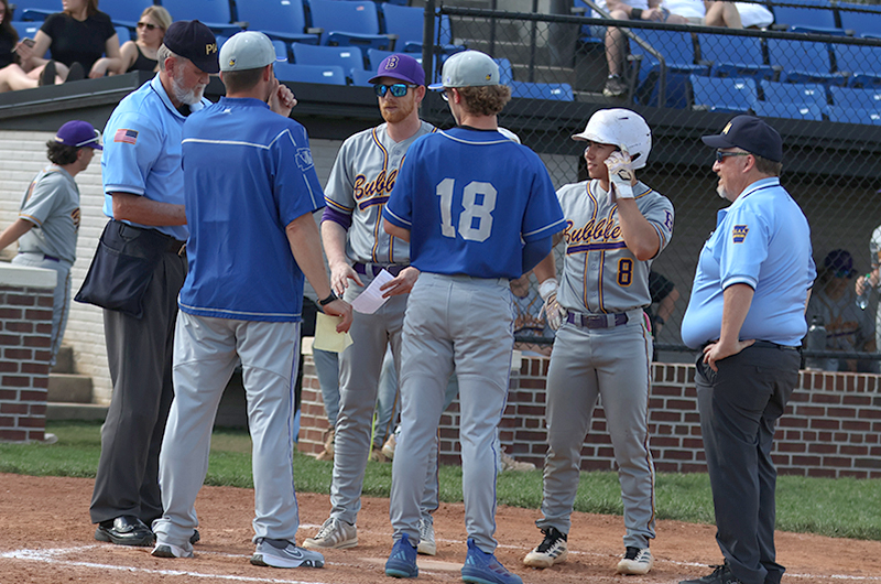 John Kahl had a rough first inning but battened down the hatches to stymie the Bubblers’ bats until he was replaced by Chance Hall with two outs in the seventh stanza. The senior, who took the loss in the first meeting between the two teams, gave up three singles and two runs in the top of the first inning. But he settled down to pitch shutout ball the rest of the way, getting plenty of help from the defense along the way.