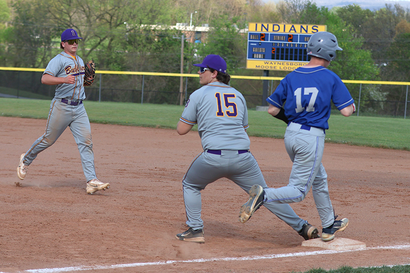 After falling behind 2-0 in the top of the first inning, the Waynesboro Indians varsity baseball team scored 13 unanswered runs to defeat the Boiling Springs Bubblers 13-2 on Thursday, April 16 at Robinson Field.