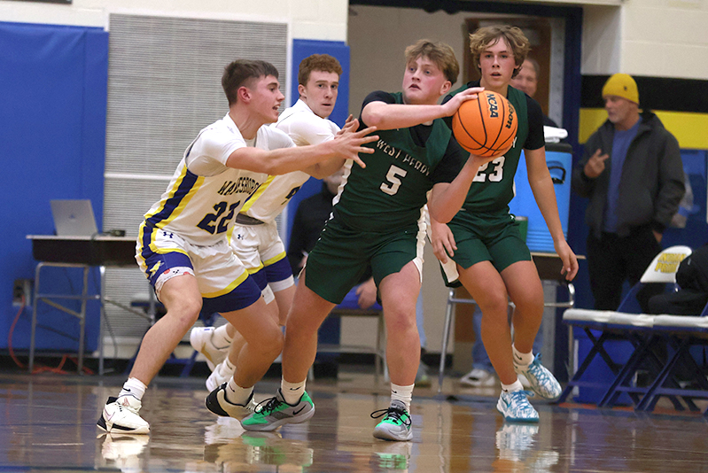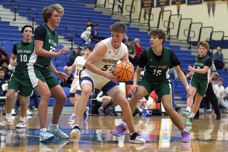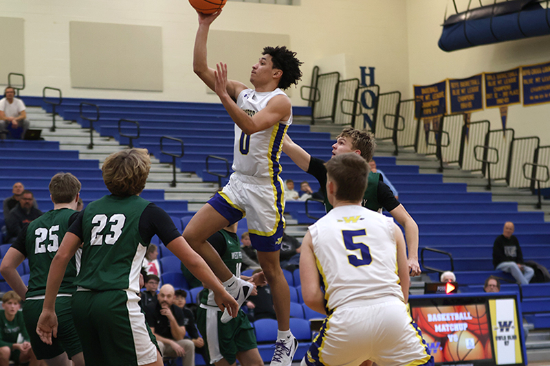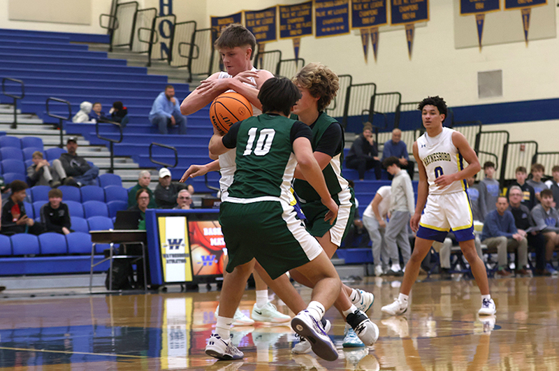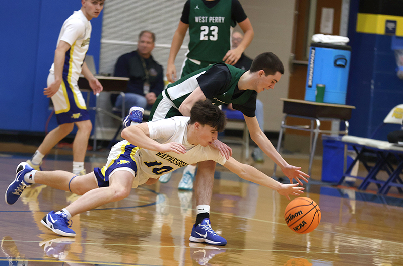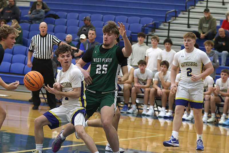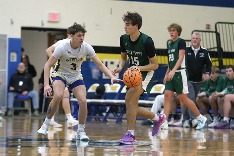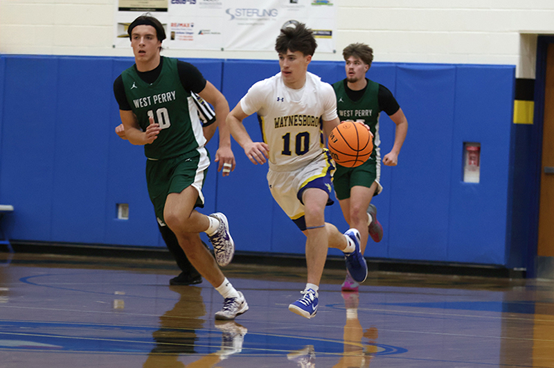 In a game that West Perry enjoyed a height advantage, Waynesboro found a way to overcome a 20-6 deficit to take the lead, 30-27 late in the third quarter. The key to the comeback was turnovers and transition (and two three-pointers by Jayden Tyler, and one each by Rayshawn Frazer-Hewitt, and Danny Martin).