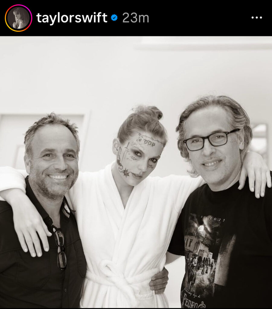Swift’s social media post from the set of “Fortnight” – Dimino, Swift, and Rodrigo Prieto, Cinematographer