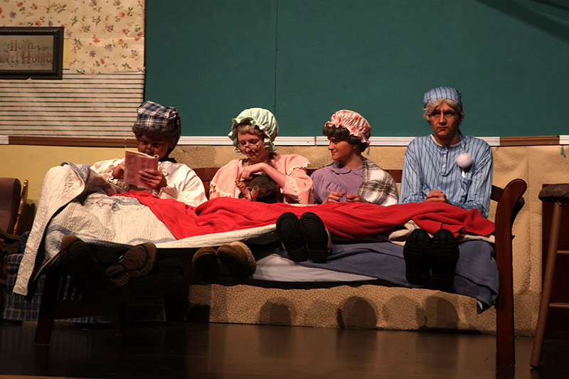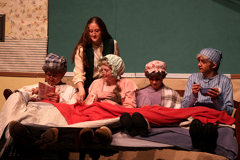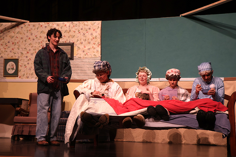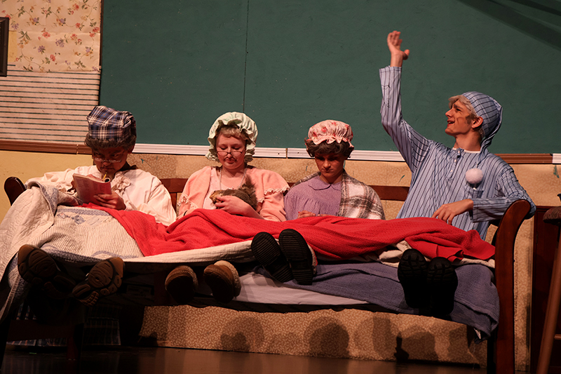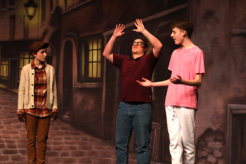 The set was constructed by 11th grader Andrew Droneburg and his father, Jack, who volunteered countless hours. Laura Wilkinson leads the hair and makeup team, with 10 to 12 students volunteering as stage crew.