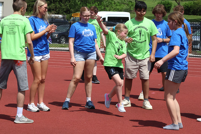 WAYNESBORO – Waynesboro Area Senior High School hosted its annual Olympics on May 2, bringing together athletes and student buddies for a day of celebration, competition and community spirit. The event, held from 9:45 a.m. to 1:30 p.m., began with a walk from the stadium to the high school, where students lined the hallways with posters and cheered as the athletes passed.