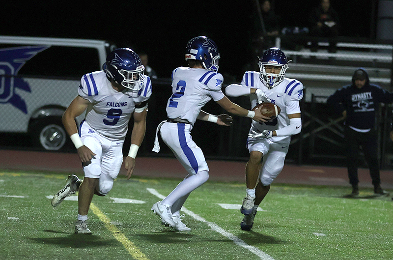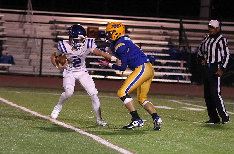 The Falcons led 21-3 at halftime and scored three more touchdowns in the second half to secure a 41-17 victory over Waynesboro in a high school varsity football game.