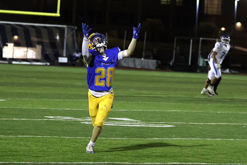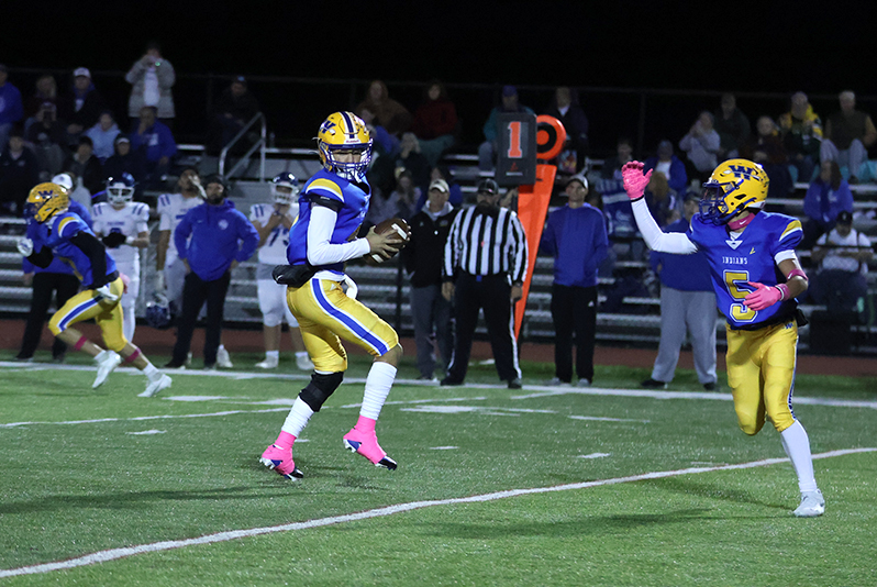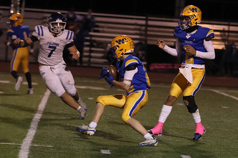 Waynesboro came right back to score a touchdown of its own. Frazer-Hewitt found his top receiver, Munday, open for a 47-yard gain, which moved the pigskin from the Indians’ 24 to the Falcons’ 29. Three plays later, Frazer-Hewitt again tossed the ball to Munday, this time for 28 yards. Carbaugh’s extra point made it 28-10.